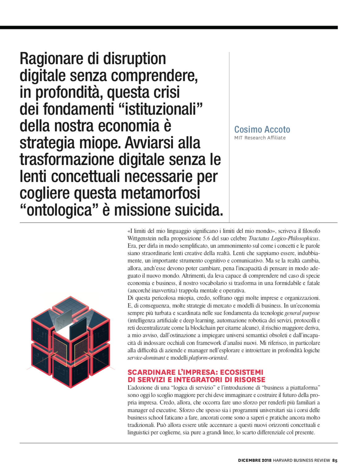 Research Affiliate at MIT | Author "Il Mondo Ex Machina" (Egea) | Philosopher-in-Residence | Business Innovation Advisor | www.cosimoaccoto.com