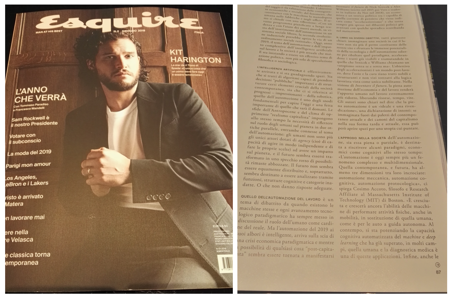 Le mie riflessioni sulle 3 forme dell’automazione nel ricco e ragionato articolo di Philip di Salvo sulla società del post-lavoro (nel nuovo numero di Esquire oggi in edicola). Un grazie di cuore a Philip per il coinvolgimento, la lunga intervista e l’invito a contribuire