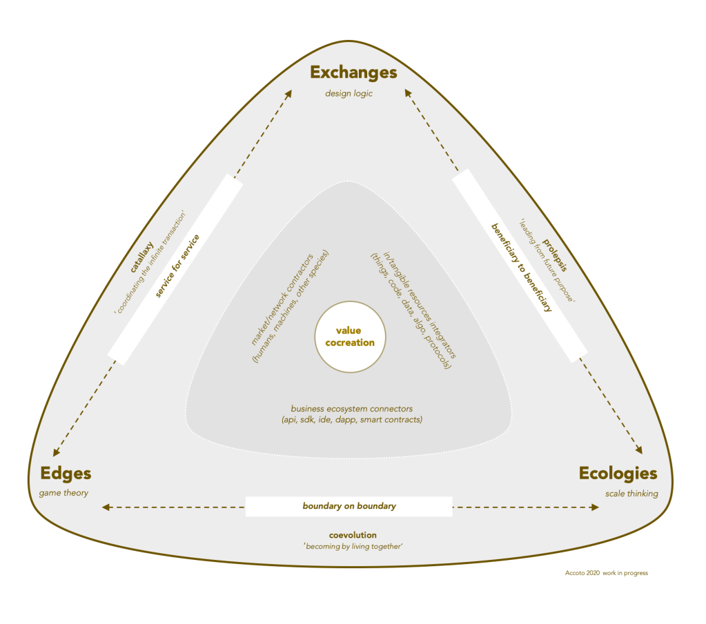 “Qual è, dunque, filosoficamente il senso della scala? Un mondo (e un’economia e un business) che si costruisce sempre più dentro e attraverso la complessità di reti e protocolli di cocreazione del valore inter-dipendenti e super-modulari, di logistiche programmate e istanziate per data flow e flow interaction, di architetture microservite di containerizzazione del codice software, di strategie sistemiche di prossimità e planetarie di sensing di mercati e imprese, di necessità, dovrà domesticarsi e allenarsi nuovamente al pensiero della scala. Pensare strategicamente l’essenza e la potenza della scala (scale theory) non è pensare semplicemente alla misura e alla dimensione delle cose, dei fenomeni, dei processi. È piuttosto l’essere capaci di vedere all’opera l’applicazione e l’esercizio di quelle forze e di quei vettori -per lo più invisibili- che danno forma e governo al nuovo mondo in costruzione in ragione delle tecnologie e delle ingegnerie scalari oggi messe a terra. Sapendo cogliere il senso e progettare il disegno dello scaffolding sottostante. Filosoficamente, lo scale thinking è un esercizio strategico vitale per imprese e manager alle prese con ecosistemi e multiversi” (Accoto 2020)