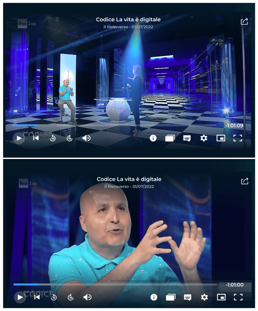 [TV] è partita la nuova stagione televisiva del programma CODICE. Così ieri ero su RAI1 nella prima puntata intervistato da Barbara Carfagna. Abbiamo parlato di metaverso e realtà estese sintetiche e simulate, di pixel e di voxel e molto altro tra potenzialità e vulnerabilità. Se avete perso la puntata (molto interessante, ricca di contenuti e ospiti ed esteticamente curata), la potete rivedere per intero e liberamente sul sito di RaiPlay. Un grazie per l’invito e l’ospitalità calorosa!