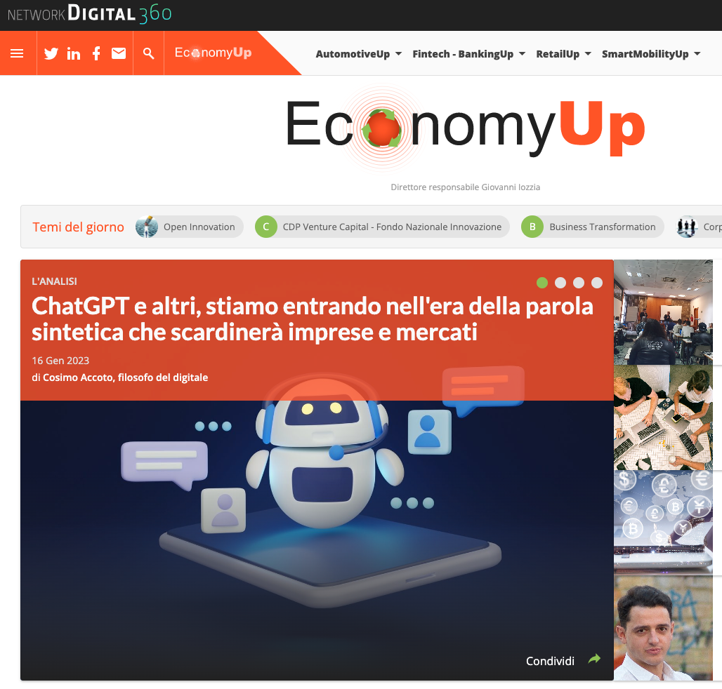 Ora su EconomyUp un mio contributo “sull’economia politica della parola sintetica”. Un grazie per l’interesse verso queste mie prime riflessioni su GPT e dintorni