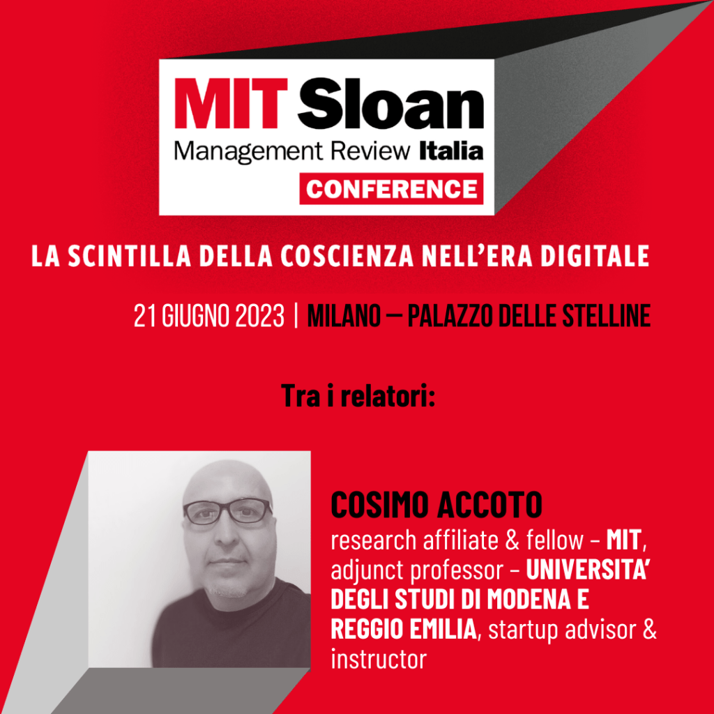 [evento] La prossima settimana sarò ospite e speaker in presenza alla prima MIT Sloan Management Review Conference italiana organizzata da ESTE (21 giugno, Palazzo delle Stelline, Milano). Il tema generale della conferenza è: “La scintilla della coscienza nell’era digitale”. Ringrazio nuovamente Chiara Lupi e Francesco Varanini per l’invito caloroso e l’ospitalità. Il mio contributo alla giornata è intitolato: “AI tra λόγος e ἔργον: una provocazione di senso planetaria”. Qui sotto il mio abstract: