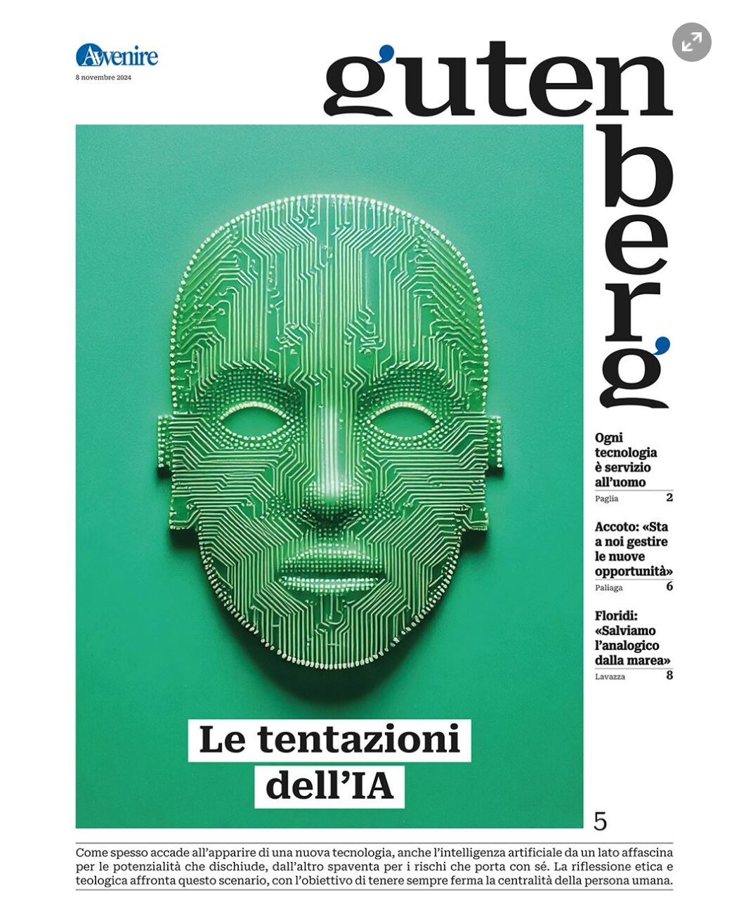 Una mia intervista oggi nell’inserto culturale Gutenberg di Avvenire in edicola con occasione dell’avvio del Festival Biblico Tech 2024
