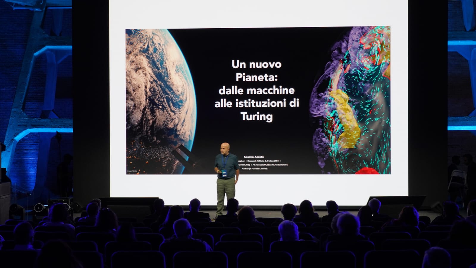 Alcuni scatti dal mio intervento plenario a IDIA Festival 2025, la giornata di analisi e riflessioni sull’intelligenza artificiale voluta e promossa dal Presidente Giuseppe Conte. Un ringraziamento a lui e allo staff per l’invito e l’ospitalità in una giornata ricca di prospettive e interventi arrivati a confrontarsi alla Città della Scienza di Napoli che ha ospitato per l’occasione anche un’area espositiva sulle nuove tecnologie. Sotto l’abile guida dei giornalisti Duilio Giammaria (RAI) e di Annalisa Girardi (Fanpage), un evento largamente partecipato a tema “AI per il bene comune”. Come dico sempre, le interrogazioni di senso provocanti e istituenti sono esistenziali (e politiche) da ultimo: perchè e per chi lo facciamo …