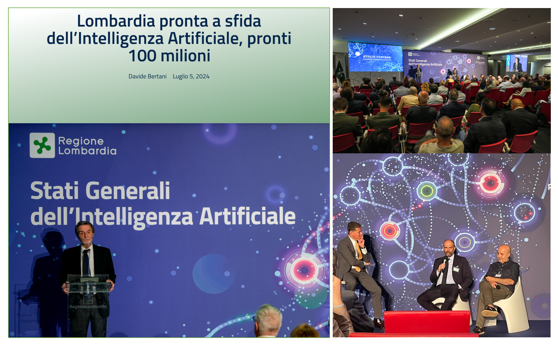 Questa settimana il lancio degli < Stati Generali dell’Intelligenza Artificiale > in Lombardia (100 milioni di euro alla partenza) con l’introduzione del Governatore Attilio Fontana, la conclusione dell’Assessore Alessandro Fermi e la moderazione del giornalista ed editorialista del Corriere della Sera Massimo Sideri … qui uno scatto dal panel con Oreste Pollicino, tra macchine di Turing e istituzioni di Turing, un dialogo tra diritto delle nuove tecnologie e filosofia delle nuove ingegnerie. Un grazie alla Regione per l’invito ad una giornata così importante per l’ecosistema lombardo, per gli apprezzamenti finali e la calorosa l’ospitalità. Ora si avvia con il coinvolgimento degli stakeholder e con una consapevolezza operativa matura l’iniziativa LombardIA, l’iniziativa di governance e sviluppo in materia di Intelligenza Artificiale avviata da Regione Lombardia per fare del territorio lombardo e del suo ecosistema di ricerca e innovazione un punto di riferimento nazionale ed europeo nello sviluppo e nell’adozione di tecnologie di Intelligenza Artificiale. L’augurio di buon lavoro e proseguimento a tutti e tutte!